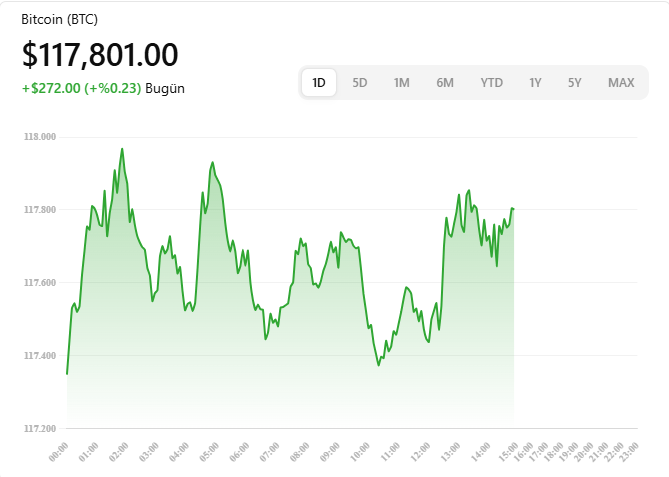 - Bitcoin cephesinde ise 118.500–118.600 $ bandında direncin kıyısında hareket ediyor; 123.000 $ ise orta vadeli hedef U.TodayBitcoin News.